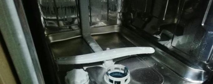 Wystarczy umieścić miarkę lub kubek z 100-150 ml octu na górnym koszu i uruchomić urządzenie w trybie krótkiego prania w wysokiej temperaturze.